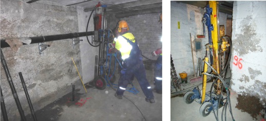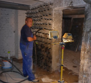 Bohrarbeiten im Keller mit leichtem Bohrgerät (Ramm- u. Hydraulikbohrer)