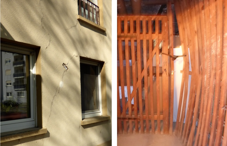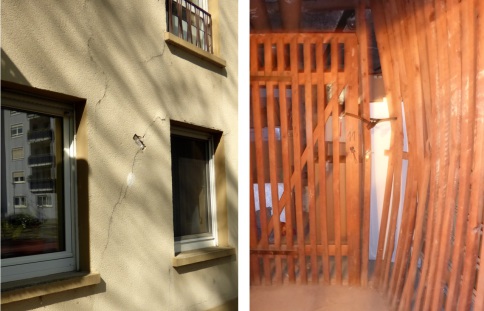 Rissbildung an der Fassade und Aufwölbung Kellerboden