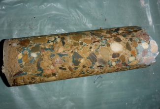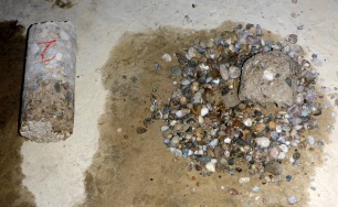 Fehlgeschlagener Versuch einer Bohrkernentnahme, rechts