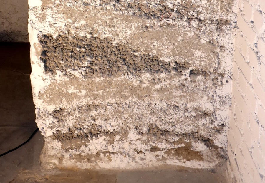Stampfbeton-Mittelwand mit stark inhomogenem Gefüge