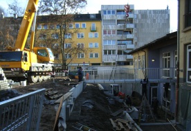 Rechtzeitig zu Beginn der Weihnachtsferien hat die Bauaufsicht die sanierten Erdgeschossräume abnehmen können. Der Kindergarten ist nach Ferienende im Januar wieder in das Erdgeschoss eingezogen. Die Untergeschossräume mit Tiefhof und die übrigen Außenanlagen waren im Frühsommer fertig. Schön war, dass wir gemeinsam mit der Kita-Leitung bei allen praktischen Problemen gute Lösungen finden konnten. Überraschend war auch, wie positiv die fertige Anlage von Kindern, Eltern und Erziehern erlebt und angenommen wurde.