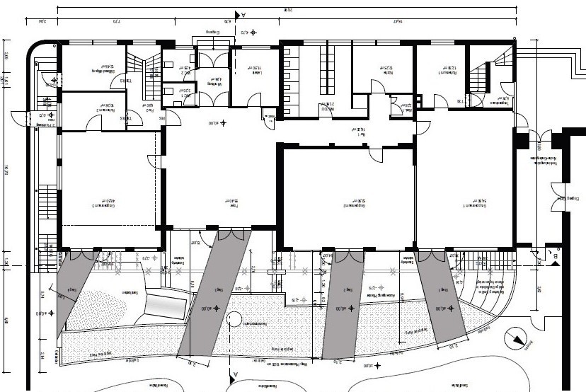 Soweit die kurz gefasste Aufgabenstellung einer Kita-Erweiterung in Ludwigshafen. Als ich das erste Mal durch den Kindergarten ging haben mich Turn- und Mehrzweckraum im Keller etwas betroffen gemacht. Die Räume waren dunkel und der Ausblick ging auf nahe Lichtschachtwände. Bei der Bestandsaufnahme stellte sich schnell heraus, dass es nicht alleine um Herstellung zusätzlicher Räume, sondern um das Gesamterscheinungsbild des Kindergartens ging.