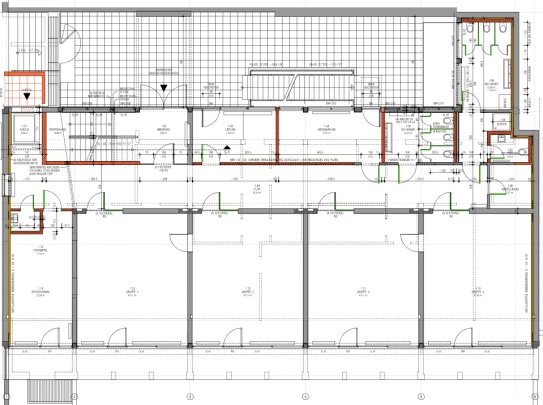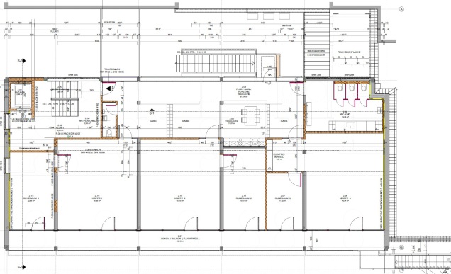 Bei dem Gebäude handelt es sich um einen 50er Jahre Bau mit sehr einfacher Bausubstanz, problematischen Rippendecken ohne Brandschutzeigenschaften und großen Bautoleranzen.