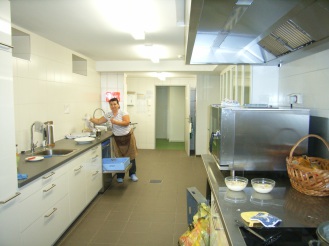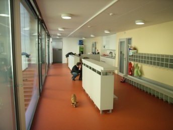 Vorraum Krippe im Obergeschoss mit Garderoben und Kochnische