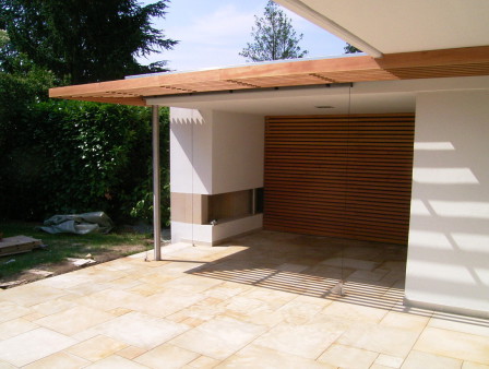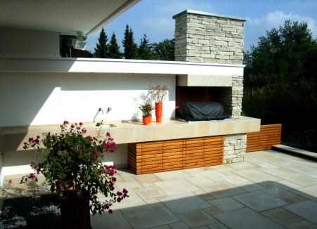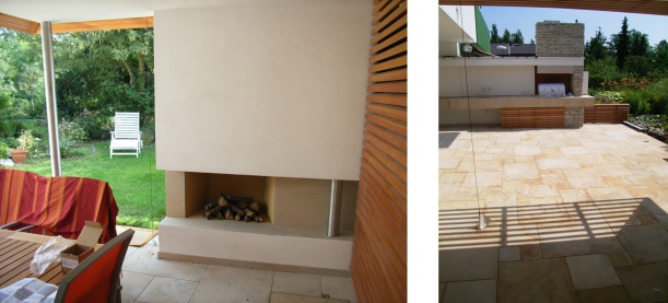 Terrasse und Sitzplatzüberdachung mit Kamin
